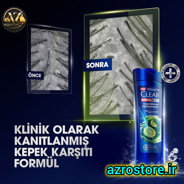 شامپو کلیر لیمویی برای موی چرب آقایان Clear men حجم 350 میل بهترین شامپو کلیر اصل ترکیه است .شامپو مردانه Clear به لطف فرمولاسیون بهبود یافته خود، موها را از آلودگی ها و چربی پاک می کند و برای افرادی که مشکل پوست سر و موی چرب دارند توصیه می شود وجود روغن موجود در شامپوی لیمویی کلیر Clear Men Maximum Refreshment منافذ مو را تمیز می کند.و وجود عصاره لیمو یاعث حفظ تعادل طبیعی پوست سر شده و احساس طراوت و شادابی حداکثری ایجاد می کند. شامپو ضدشوره کلیر clear با تکنولوژی 3ZeroTech با فرمولاسیون جدید ژل مایع، از مشکلات پوست سر مانند شوره سر، خارش و چربی جلوگیری می کند.
