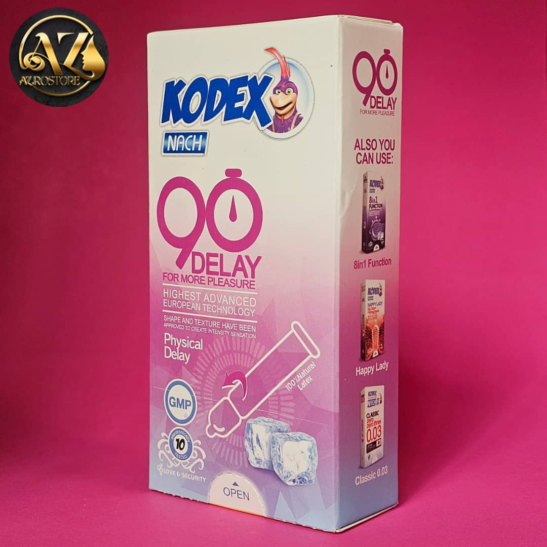 کاندوم تاخیری 90 دقیقه دیلی کدکس محصولی کاملا جدید و اختصاصی از برند کدکس است. رینگ ویژه موجود در این کاندوم با روش اسکوئیزینگ موجب تاخیر در انزال میشود. روش اسکوئیزینگ در تحقیقات برای تاخیر استفاده می شود و فاقد هر گونه عارضه جانبی است. همچنین بنزوکائین موجود در لایه داخلی این کاندوم به تاخیر کمک میکند.