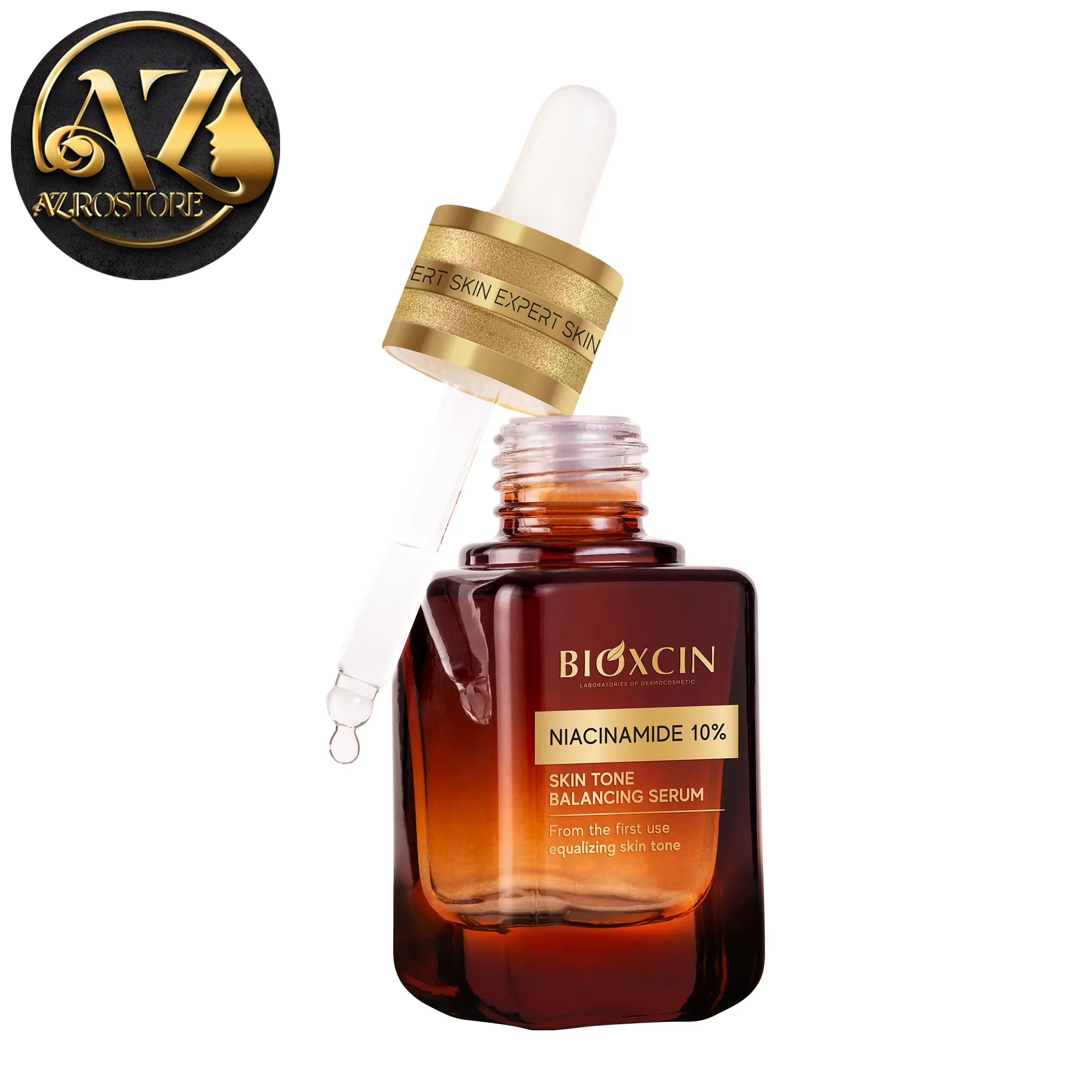 سرم متعادل کننده رنگ پوست صورت بیوکسین Bioxcin حاوی نیاسینامید ۱۰ درصد، یک محصول مراقبت از پوست است که برای بهبود رنگ و بافت پوست، کاهش لک های تیره و منافذ باز، و کنترل چربی پوست طراحی شده است. نیاسینامید، نوعی ویتامین B3، یک ماده موثر با خواص متعدد برای پوست است که به تقویت سد دفاعی پوست، کاهش التهاب و قرمزی، و بهبود ظاهر کلی پوست کمک می کند.