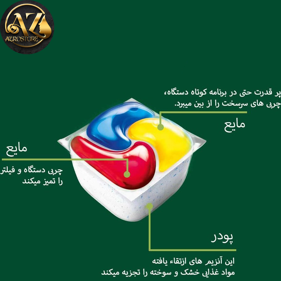 فرمول این قرصها به گونهای است که سریع در آب حل میشود و نیازی به باز کردن روکش یا شستشوی اولیه ندارد. همچنین قرص شامل نمک و جلادهنده داخلی است و شما نیازی به استفاده جداگانه از این محصولات نخواهید داشت. حتی در چرخههای کوتاه شستشو، نتیجهای بینقص و درخشان خواهید داشت.
